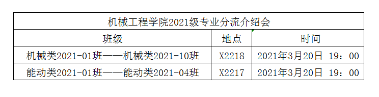 专业介绍会后,按班级填写《云博电子·(中国)网站专业分流志愿表》并签字,纸质稿3月28日上午10点之前交至X2205辅导员办公室,电子稿发送至邮箱jxxy20212021@163.com,邮件标题为机械类2021-*班/能动类2021-*班专业分流志愿表。
