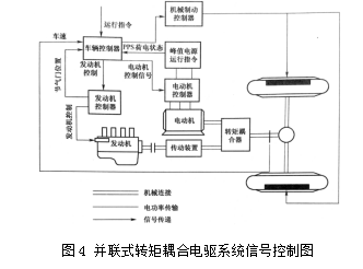 并联式电驱动系的具体结构下图所示。图中机械联轴器即为将发动机和电动机输出转矩转速进行耦合的装置。