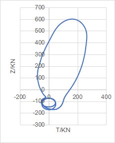 曲柄销上作用有切向力T和法向力Z,Z=K-Prc ,由作图法画出曲柄销载荷图如下:
