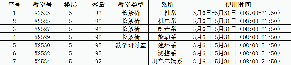 2.所有专用教室将从3月6日全面开放,若使用中有问题,请与二号教学楼物管X2219(电话:66367711)或教务处实践科(电话:66366254)联系。