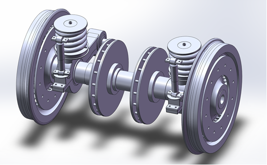 轮对的设计:设计车轮踏面、轮辐、轮座等,设计各轴段尺寸,装配上制动盘。