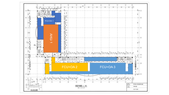 根据房间的用途,使用频率,和建筑的布局以及符合的特性进行分区,同一区域的系统形式和送风方式是相似的。三、四层(除大法庭)房间选用风机盘管加新风系统,大法庭选用全空气系统。