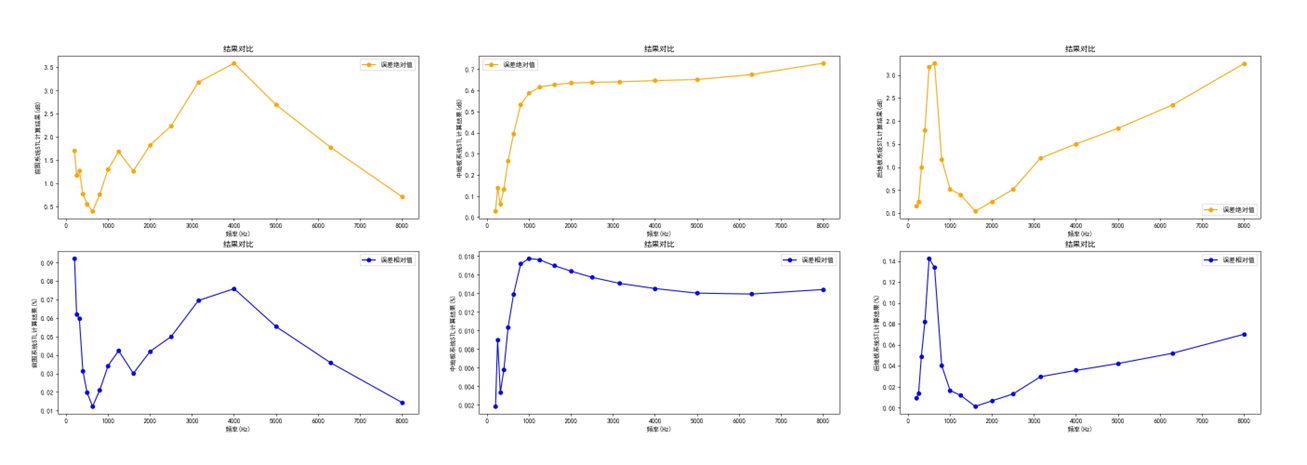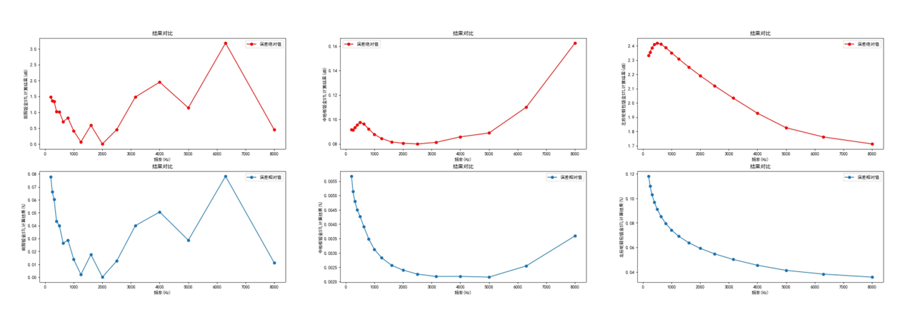 应用Python编程,先读取声学包隔声性能参数(如各厚度面积占比、各厚度隔音量),然后利用for嵌套循环语句进行部件级隔声量计算,最后绘制频率-STL图像,以及绝对误差、相对误差图像,验证预测模型的有效性。