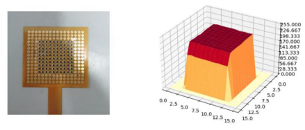 (a)完整压感传感器前端 (b)受力极限测试结果可视化