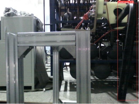 图10 使用训练好的YOLO v5模型对试验小车上的提钩杆检测识别效果