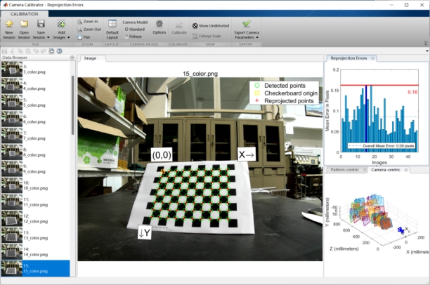 经过MATLAB和Python代码(以及OpenCv工具)标定、MATLAB工具箱标定等的对比,综合精确度与方便程度,最终选择了MATLAB工具箱进行相机标定。部分标定结果展示如下: