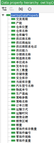 (3)基于Protégé的本体模型构建:使用本体建模工具Protégé创建本体模型,将定义好的类、属性和关系在工具中进行可视化构建,建立初步的汽车供应链库存管理本体框架。部分操作结果如下图所示。