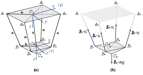 回答:非唯一解是因为机构有多种位姿可以满足绳长限制(因为仅提供4个约束),但欠约束不代表不可控。我们可以考虑简单的数绳吊起物体的情景,物体受绳拉力和重力作用,在合理的绳长下其平衡位置是唯一的。只要控制上能够通过合适的反馈消减其势能引起的“摆动”,就能确保受控的动平台尽可能减少震荡并满足期望位姿。