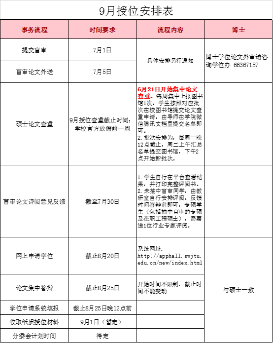 统一收取纸质版授位材料的具体时间为:9月2日,暂定收材料地点:九里机械馆2239室