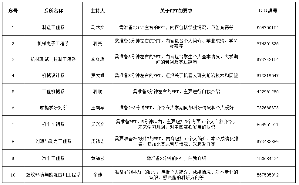 7月9日下午14:00开始,营员分系所参加学术交流活动,各系所关于PPT的要求及交流活动的OO群号如下: