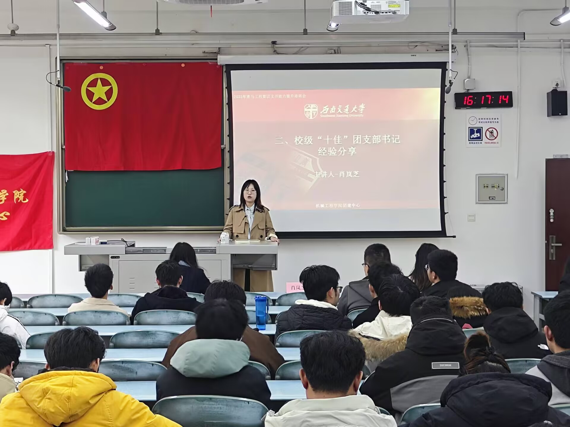 2023年度西南交通大学“十佳”团支部书记肖岚芝同学结合自身经验,从智慧团建系统操作规范、青年大学习参与率提升策略、团日活动创新设计等方面展开分享。她提出,团支书可通过联动班委团队策划主题活动,增强团日活动的吸引力与覆盖面;同时呼吁全体团支书强化团务理论学习,以先锋带头意识推动团支部建设,切实发挥模范引领作用。