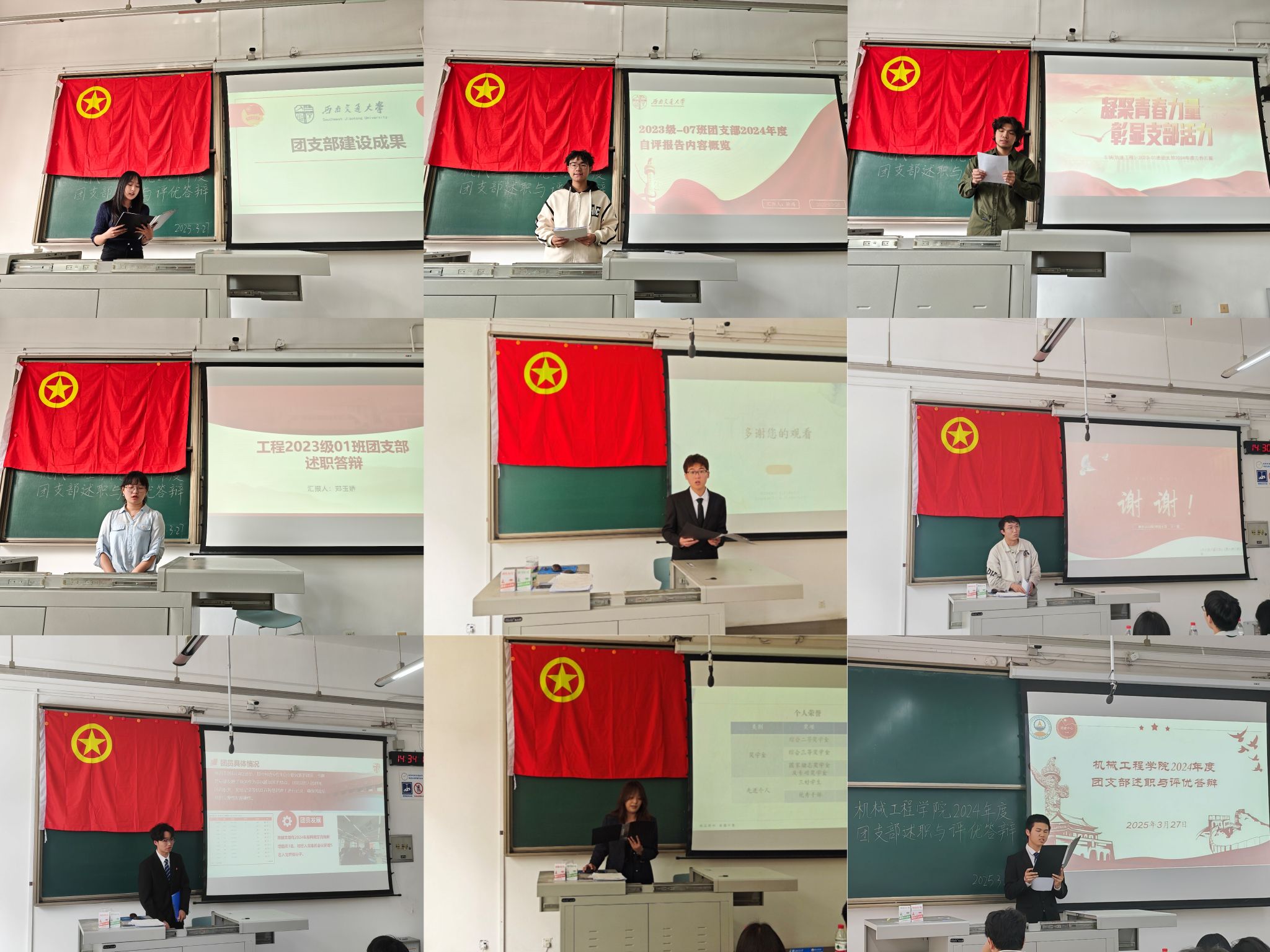 会上,各团支部书记依次上台述职,他们通过精心制作的PPT 和详实的数据,全面展示支部过去一年在思想引领、组织建设、志愿服务、文体活动等方面取得的成绩。在组织建设方面,各团支部严格落实“三会两制一课”制度,定期召开支部大会、支部委员会、团小组会,同时积极做好团员发展工作,组织基础持续夯实。