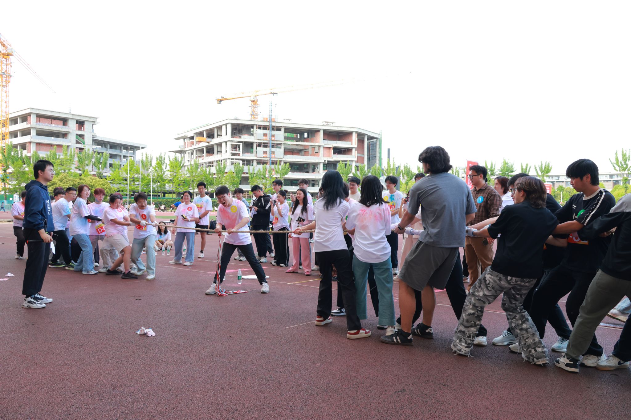 下午5点,活动转场至北区田径场,进入精彩的百团素质拓展环节。全体师生先后参与了包括迎面接力赛、拔河、跳大绳、四人五足等趣味游戏。在“同心协力”接力赛中,队员们配合默契,交接流畅;在“步调一致”四人五足项目中考验团队协调能力,参赛者从踉踉跄跄到配合无间;在“精工协作”跳大绳项目中,要求8字形路线,模拟齿轮啮合运动;在“力拔山河”拔河比赛中,各队使出浑身解数,将活动推向高潮。现场加油声、欢笑声此起彼伏,大家其乐融融,秉承着“友谊第一,比赛第二”的理念,充分彰显了交大机械人友善向上的精神风貌。