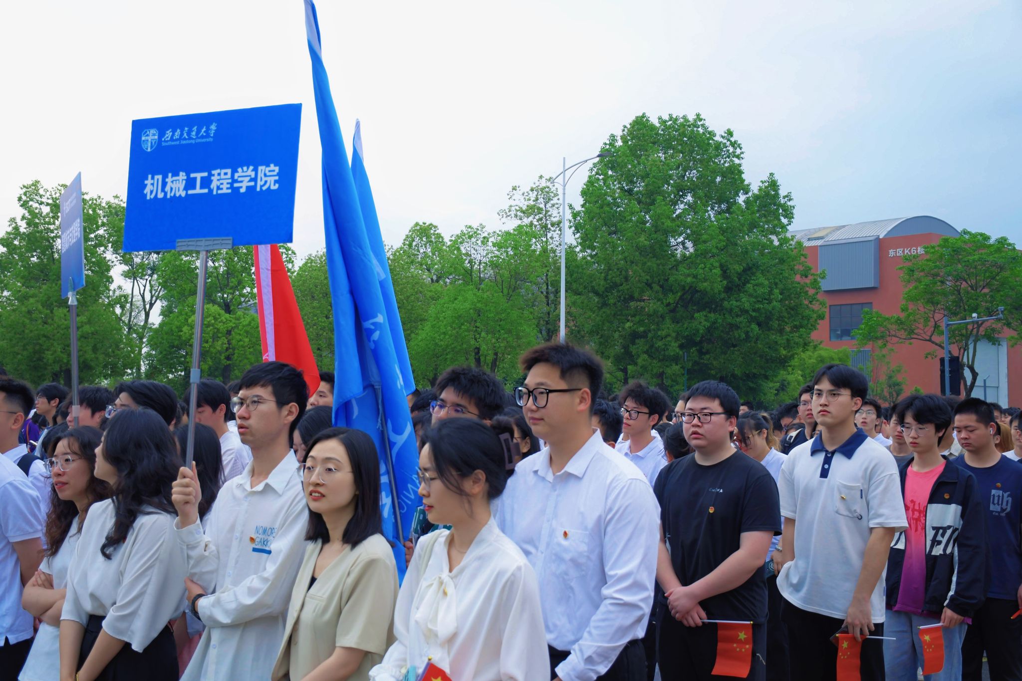 接着,全体师生昂首挺胸,齐声高唱《五星红旗迎风飘扬》。歌声里饱含着交大人对祖国的深情祝福,更凝聚着新时代青年的奋斗决心——“歌唱我们亲爱的祖国,从今走向繁荣富强”的誓言,化作每个人心中最炽热的信念,激励着师生们以实干报国,用青春书写时代华章。