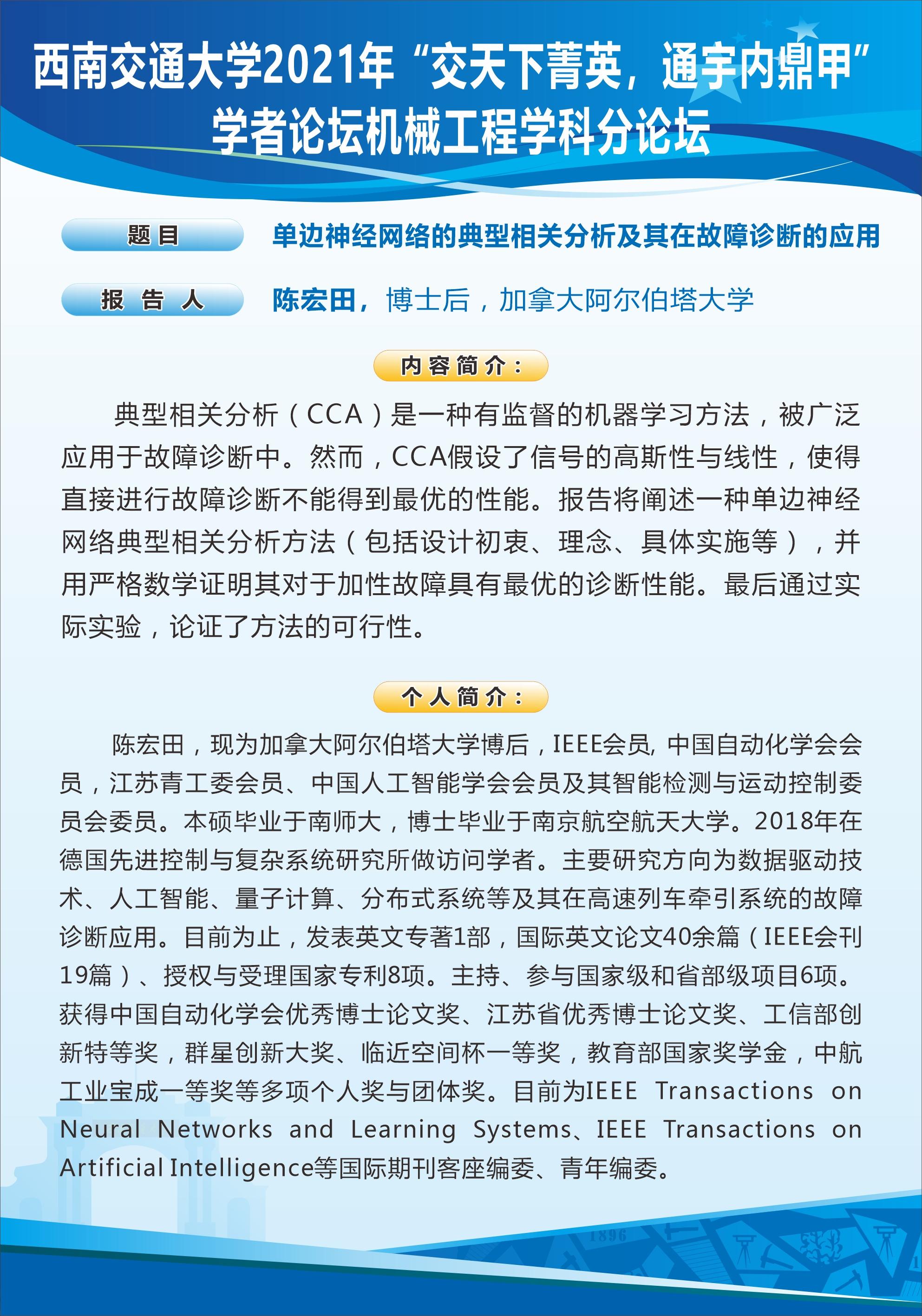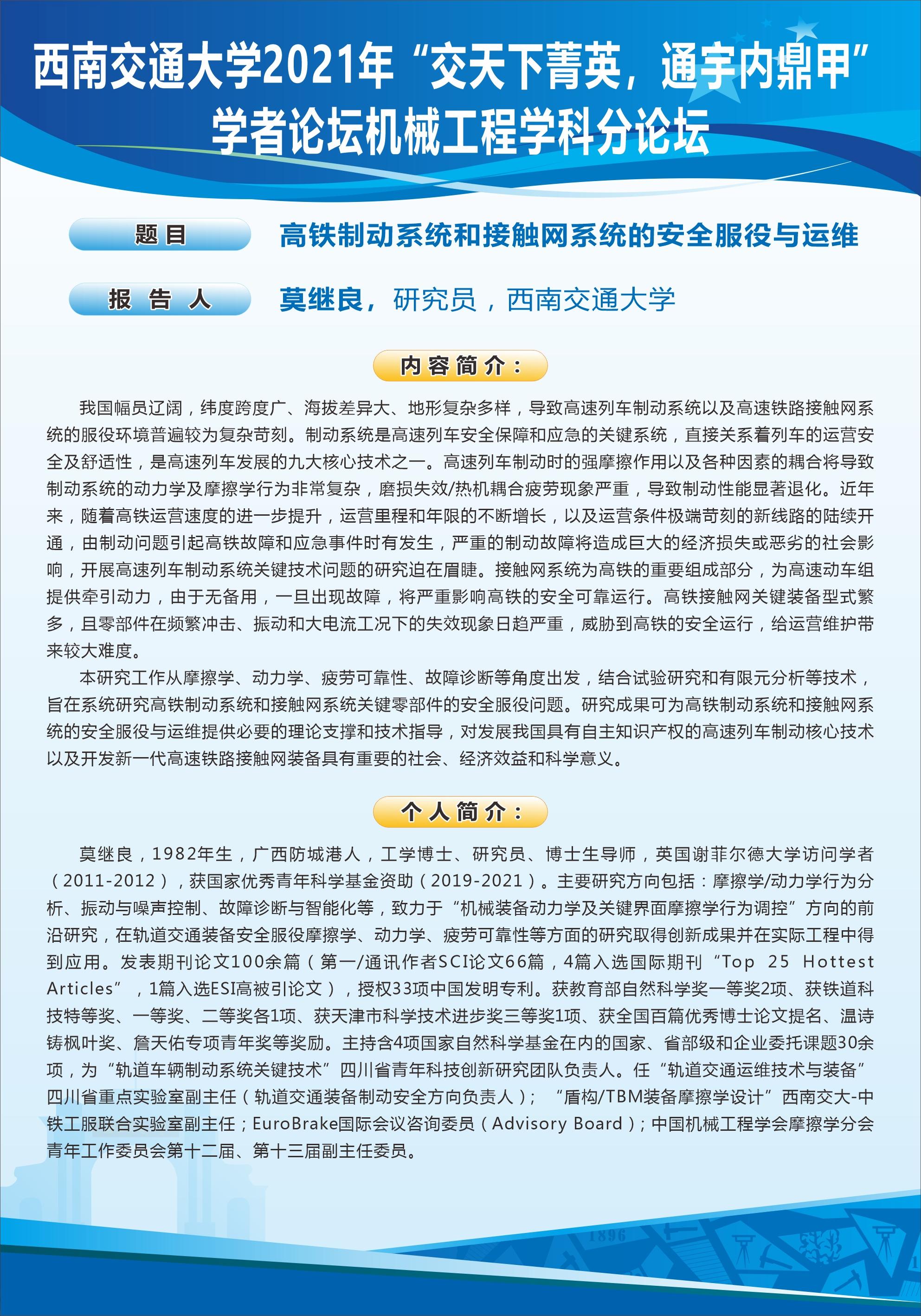 西南交通大学2021年“交天下菁英,通宇内鼎甲” 学者论坛机械工程学科分论坛
